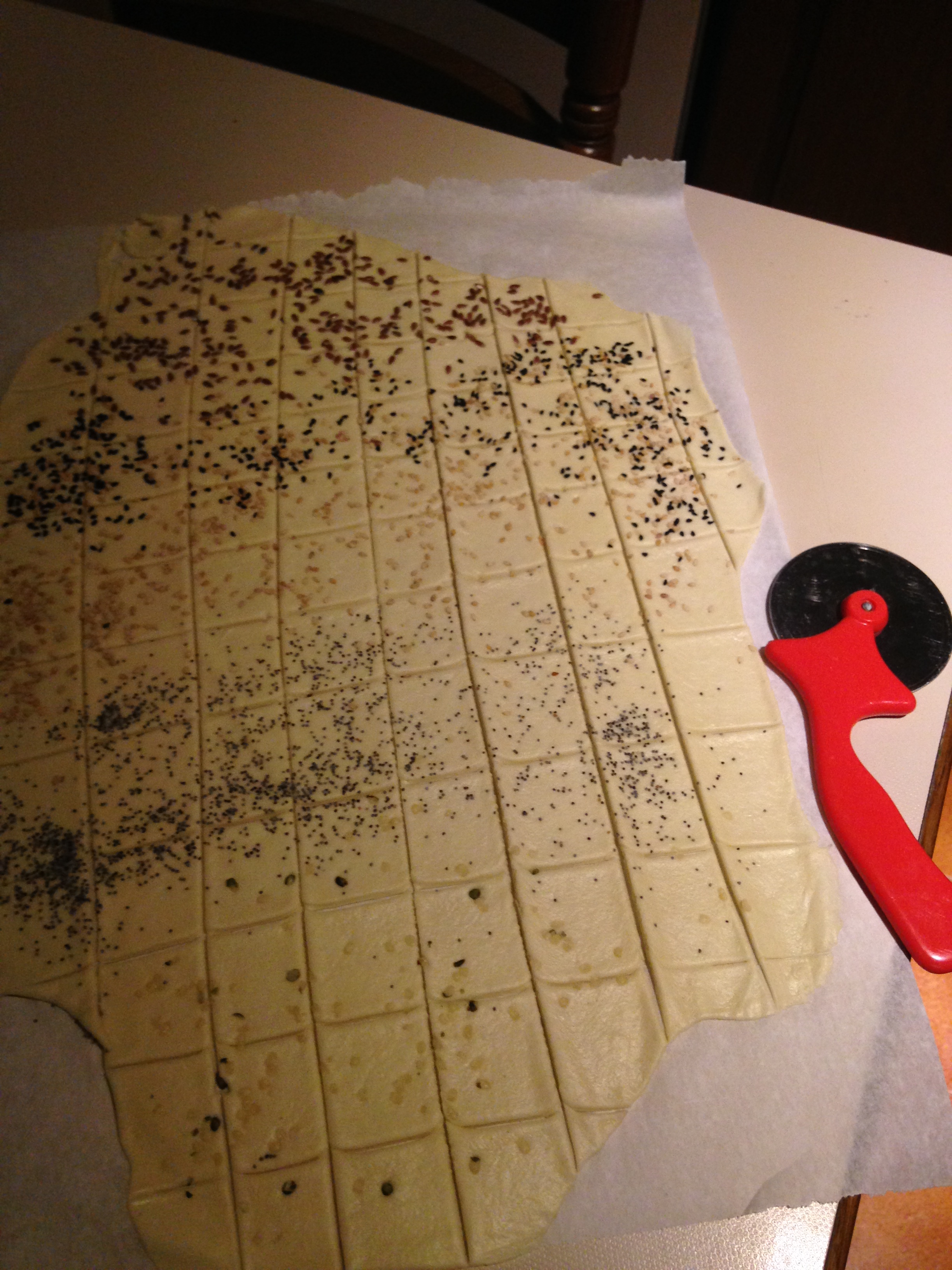 Potete aggiungere semi di girasole, di lino, di canapa, di papavero, di sesamo, di zucca o scaglie di sale a seconda del vostro gusto…in questo caso conviene passare il matterello per farli penetrare nella pasta.