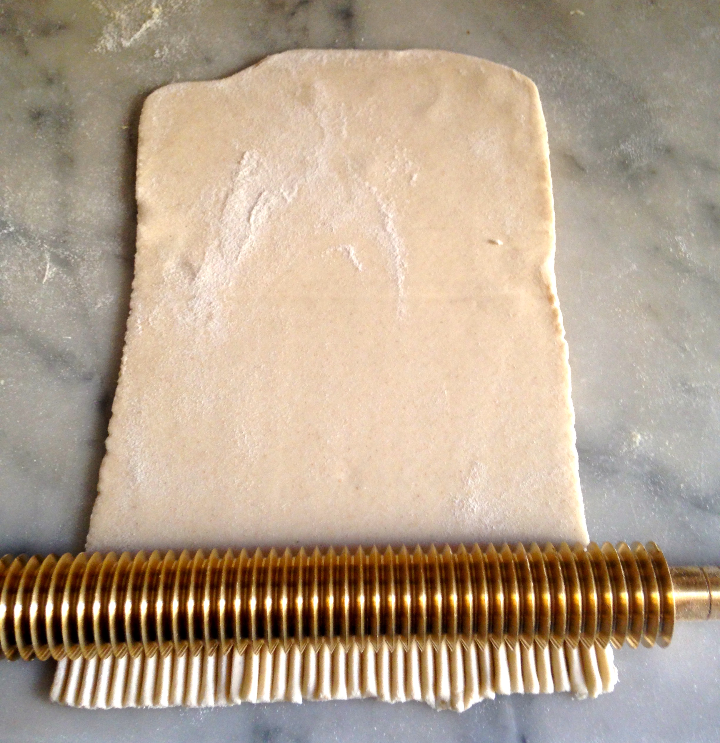 Occorre poi tirare una sfoglia piuttosto spessa a mano o con l’apposita macchinetta (ricordatevi di infarinare sempre abbondantemente) e lasciare che la pasta si asciughi un po’.