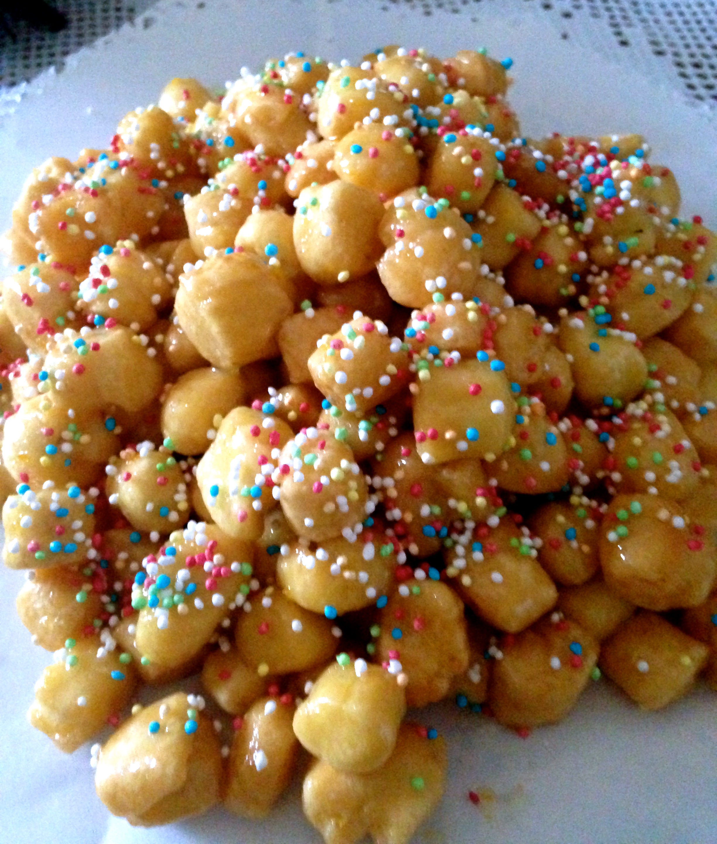 Dividere l’impasto in piccole porzioni, allungare la pasta a salsicciotti fini e tagliarli a tocchetti di 1-2 cm. Far friggere in olio extravergine di oliva bollente pochi alla volta e finchè non diventano dorati. Porre su carta assorbente.